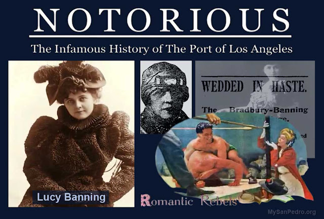 Lucy was born in1876 in the 23 room greek revival mansion in Wilmington that her Dad had built in 1864. (still there, site of the Banning Museum). A young gal when Phineas called it a day she now had dough and wanted out of Squaresville Wilmington. Her many suitors included the handsome young attorney Johnny Bradbury whose Pop was a gold-mining and real estate tycoon. The family’s name is commemorated by the famous Bradbury Building in downtown L.A., the town of Bradbury, and Bradbury Estates.